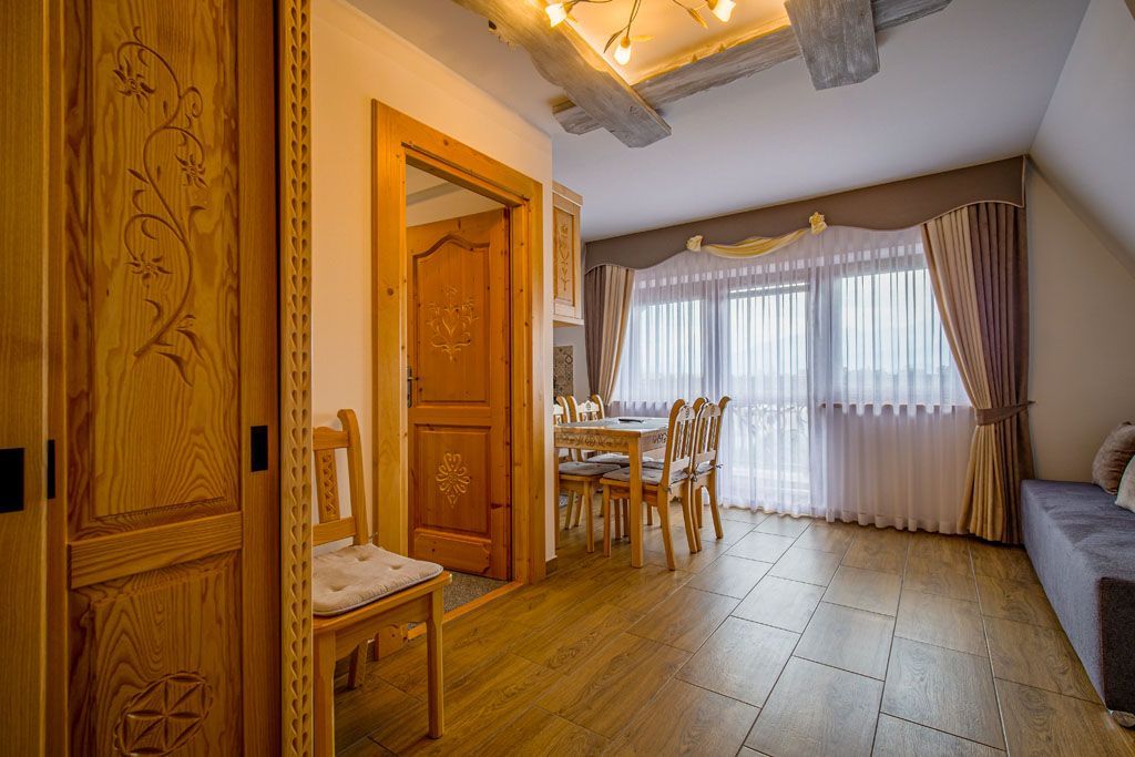 - Sypialnia 3os + duża przestronna kuchnia w pełni wyposażona z wypoczynkiem (2os), 2 łazienki. Balkon z widokiem na całe Tatry.